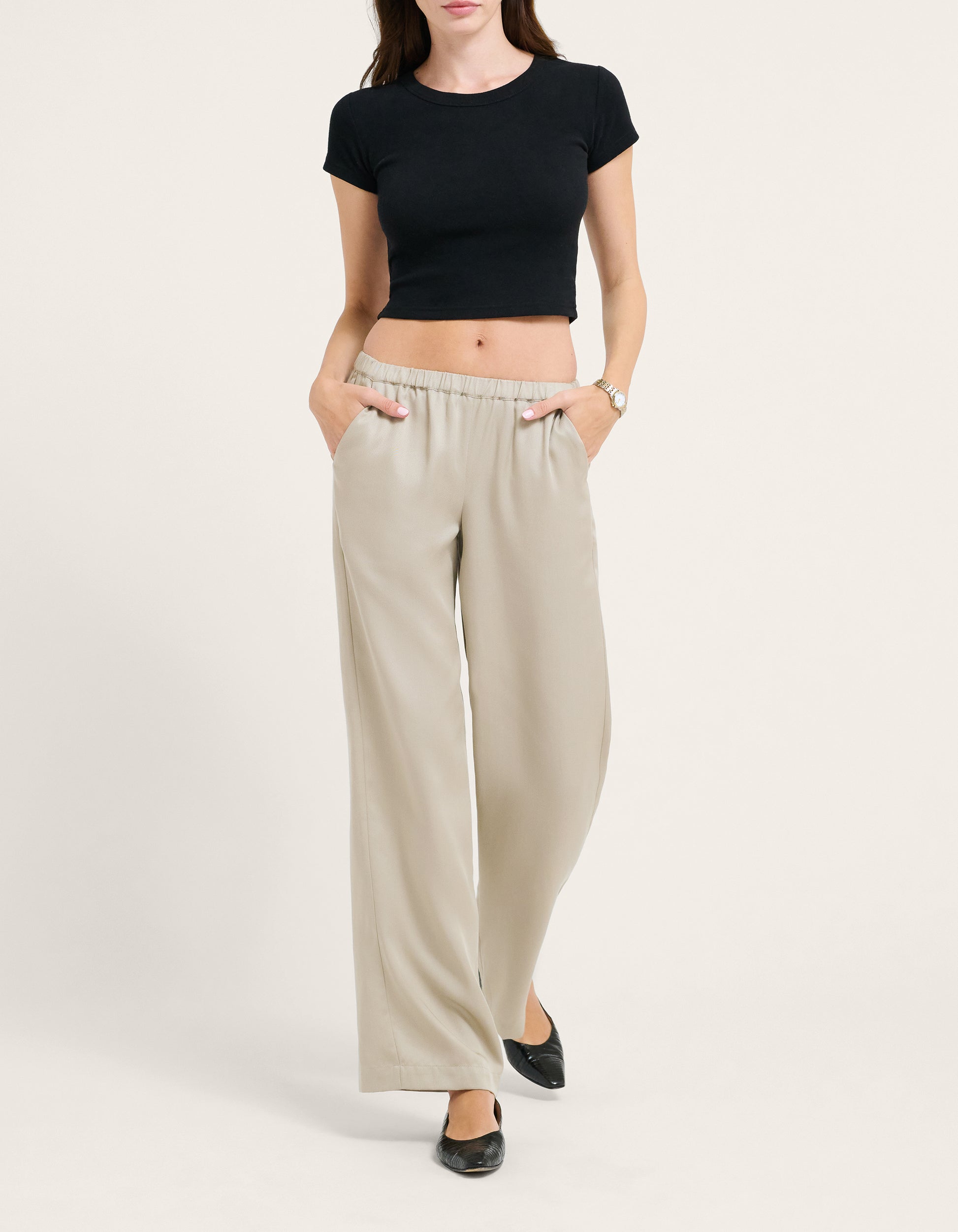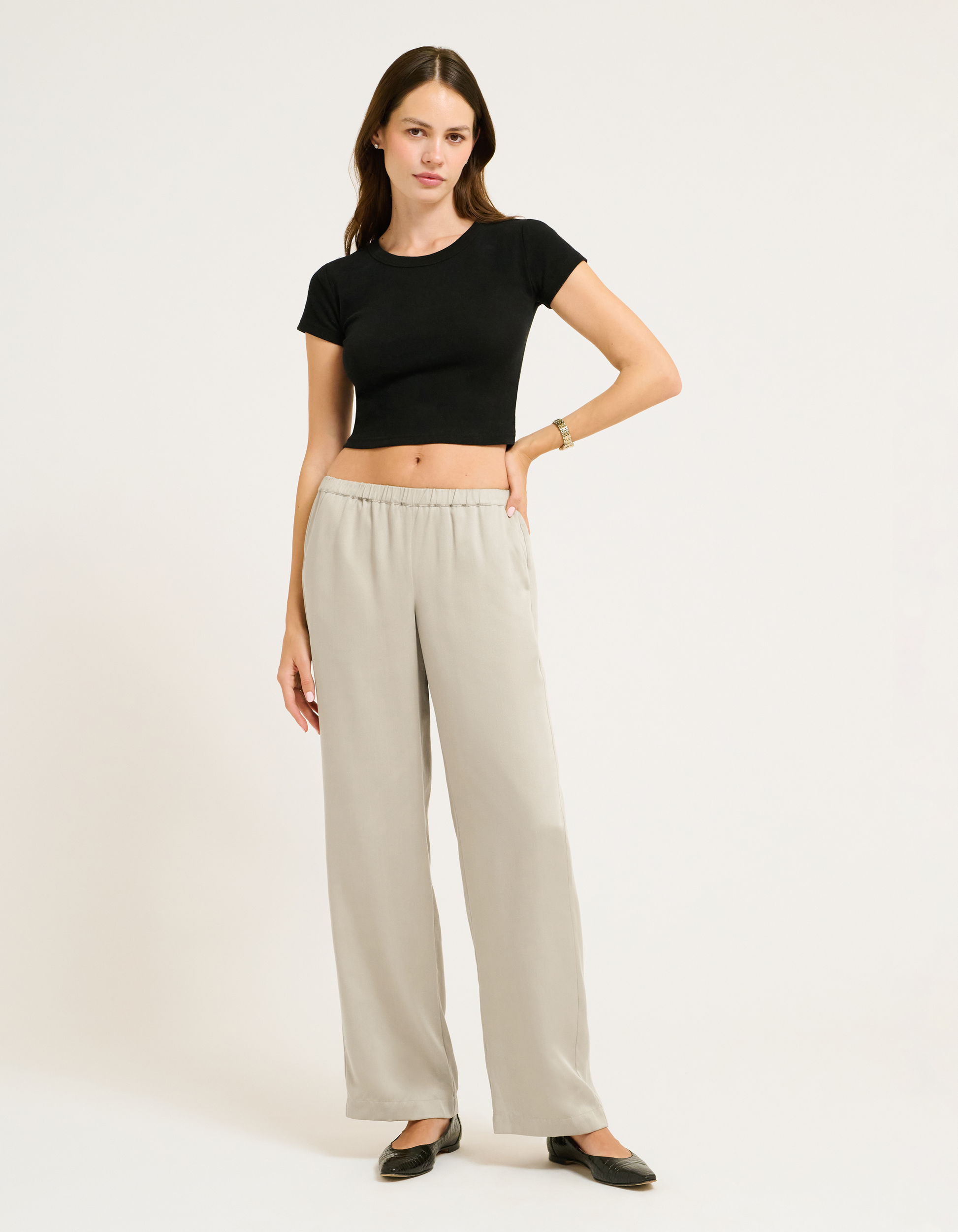 Made to pair and layer with everything, this is the perfect soft cropped crewneck staple tee.
