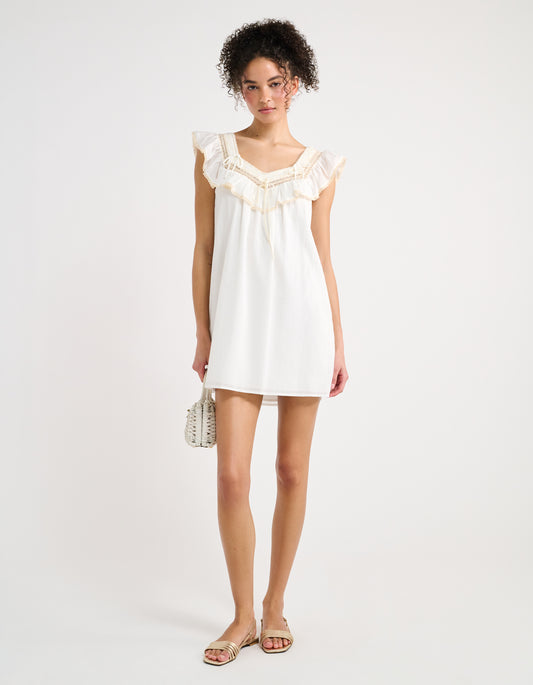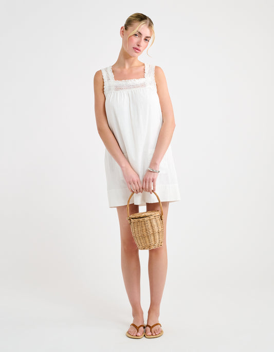 The kind of piece that slips on effortlessly and feels right from morning into late afternoon. Made in a breathable linen blend with pintuck and lace details that feel thoughtful rather than ornate.