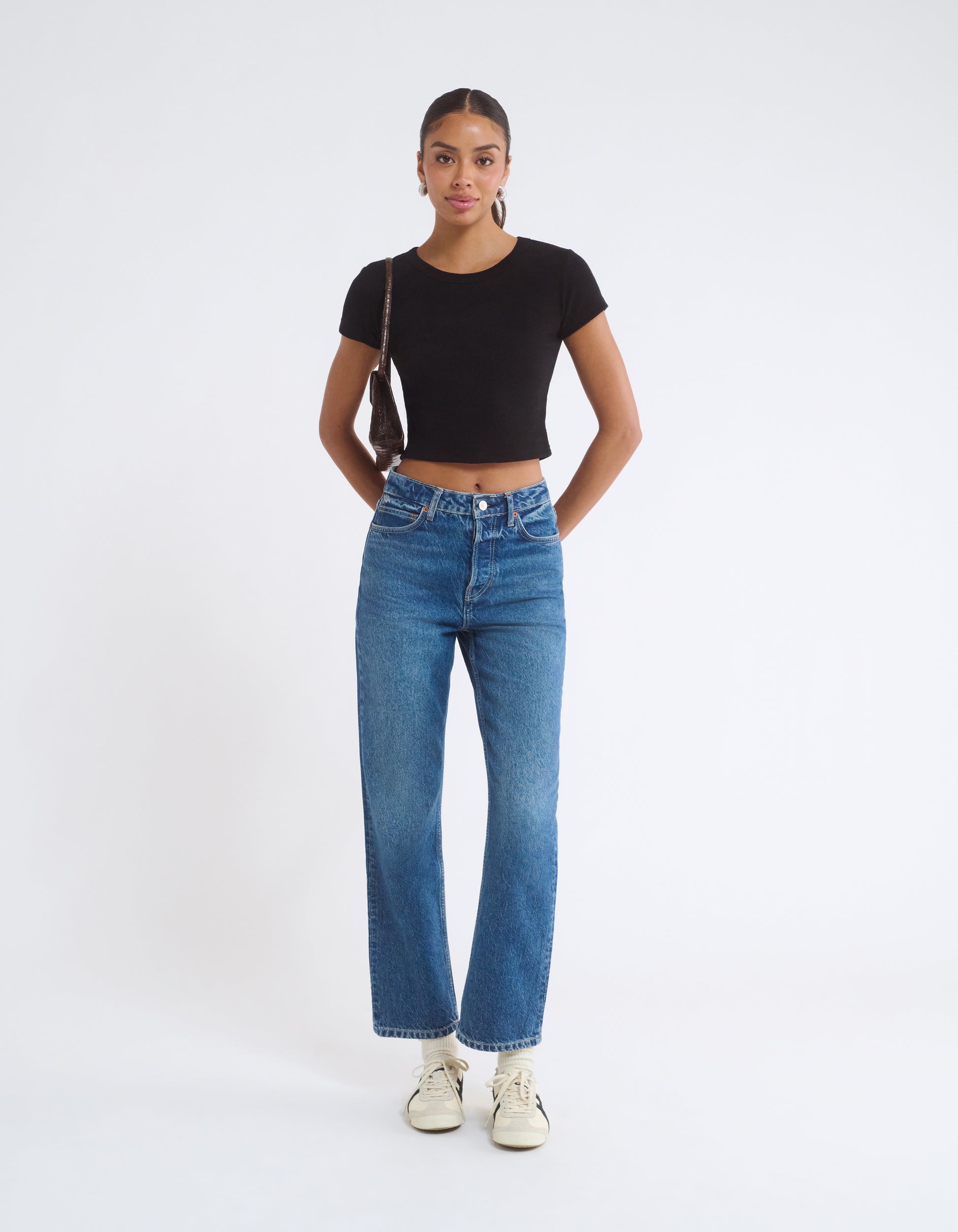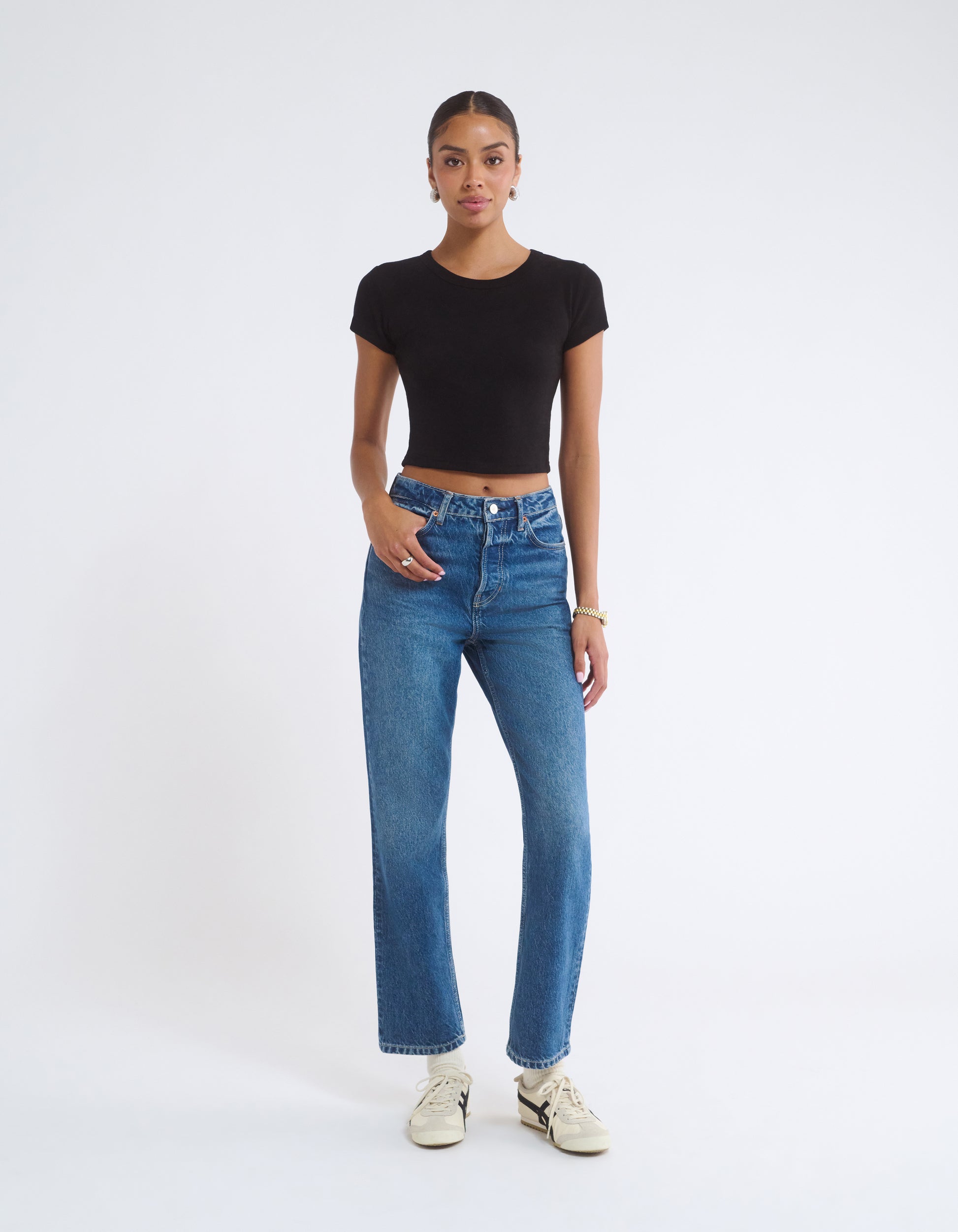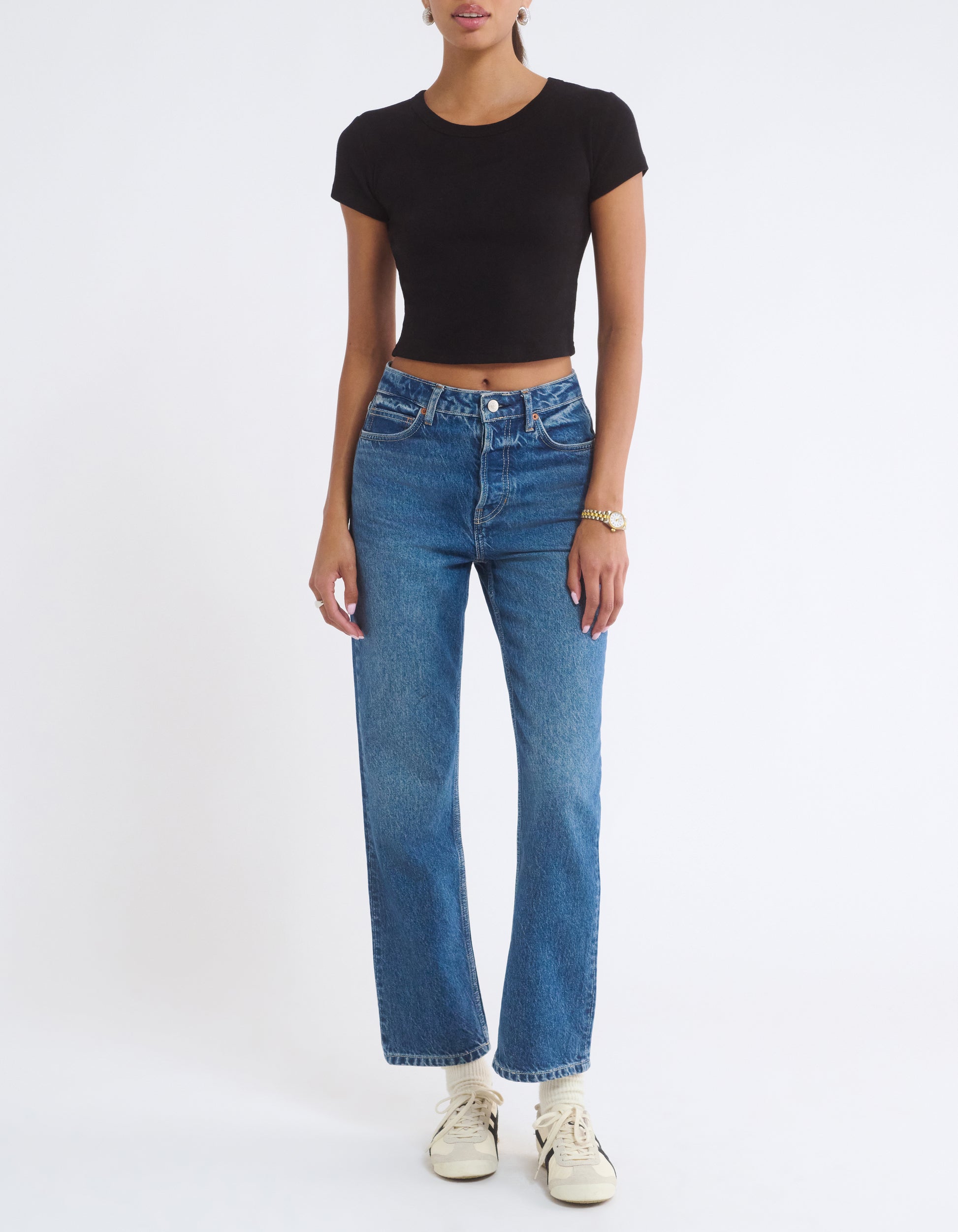 Made to pair and layer with everything, this is the perfect soft cropped crewneck staple tee.